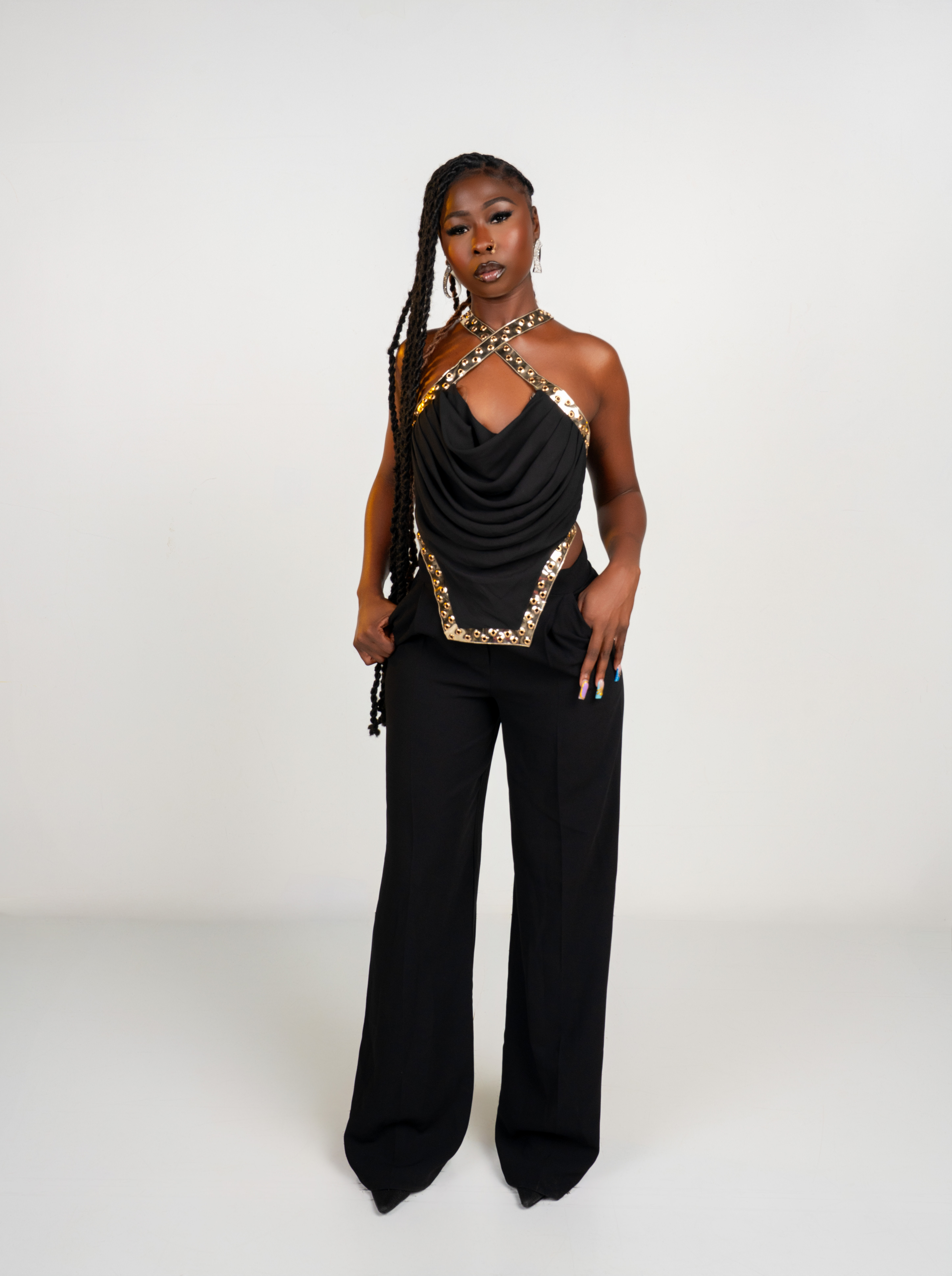 Adorable and magnificent pleats from waist to hem. These are designed and inspired for a relaxed and comfortable fit. These pleats add a stylish touch, full of grace for any elegance occasion. Bandeau bodice with rhinestone catching the light with every movement.